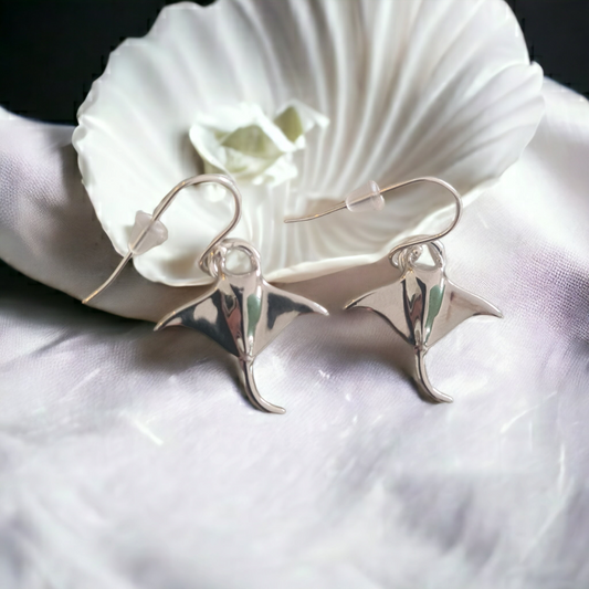 Ningaloo Manta Ray Sterling Silver Earrings