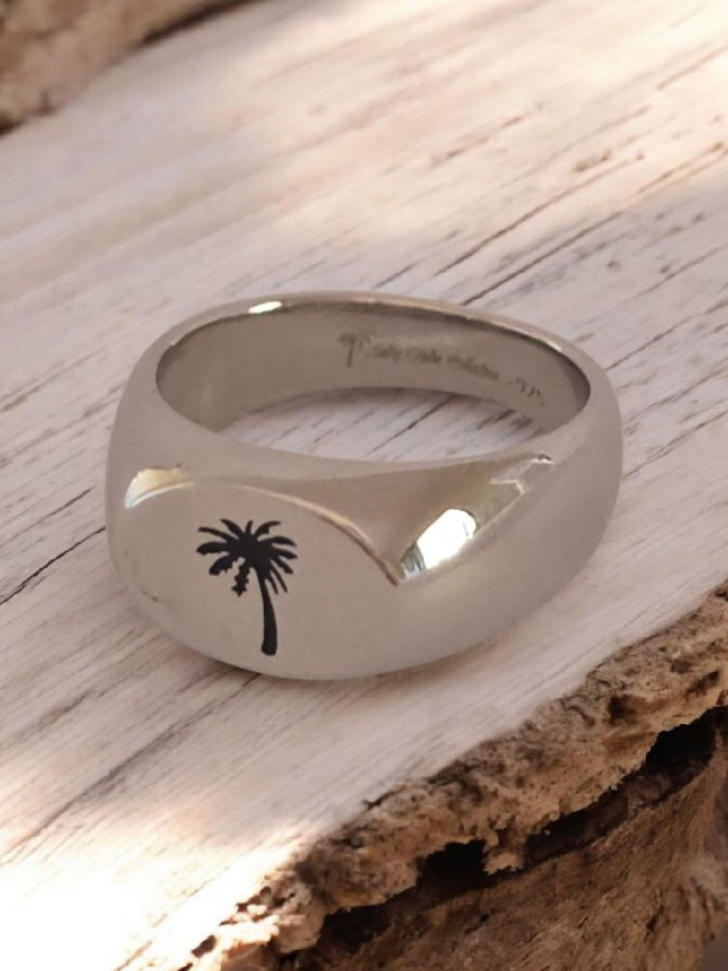 Designed with a solid Sterling Silver band and coconut Tree print this ring is perfect for that Ocean Lover. Perfect fit for both men and women.