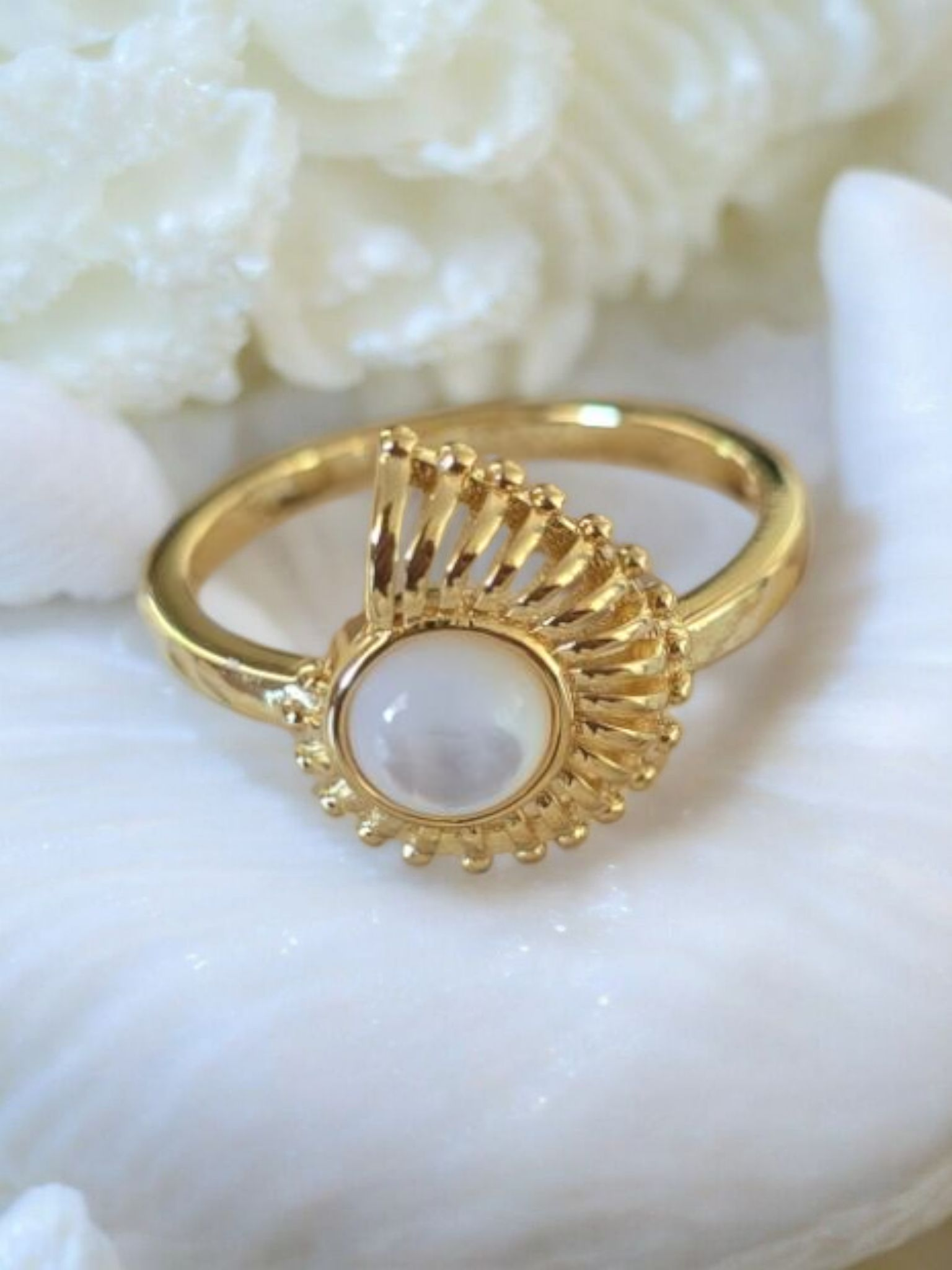 14k Gold Vermeil settled with Mother of Pearl.